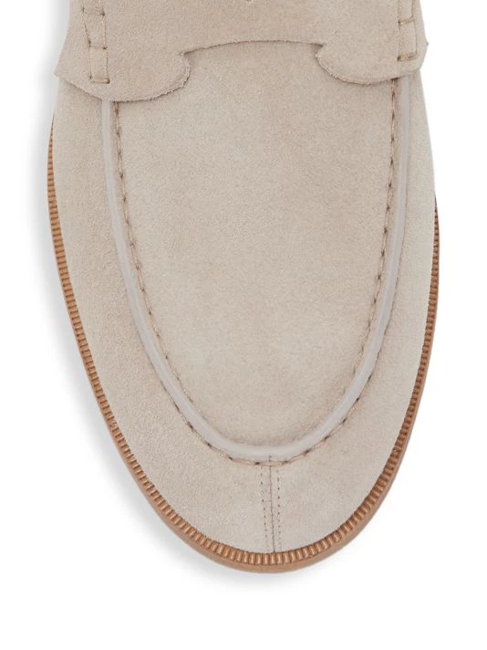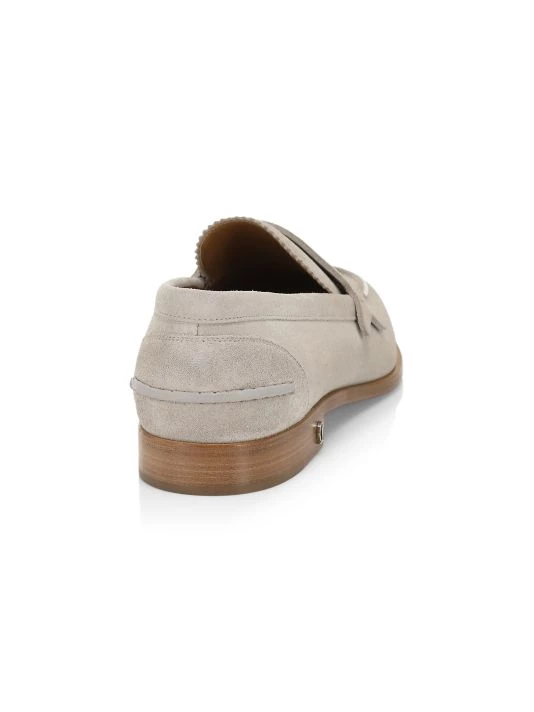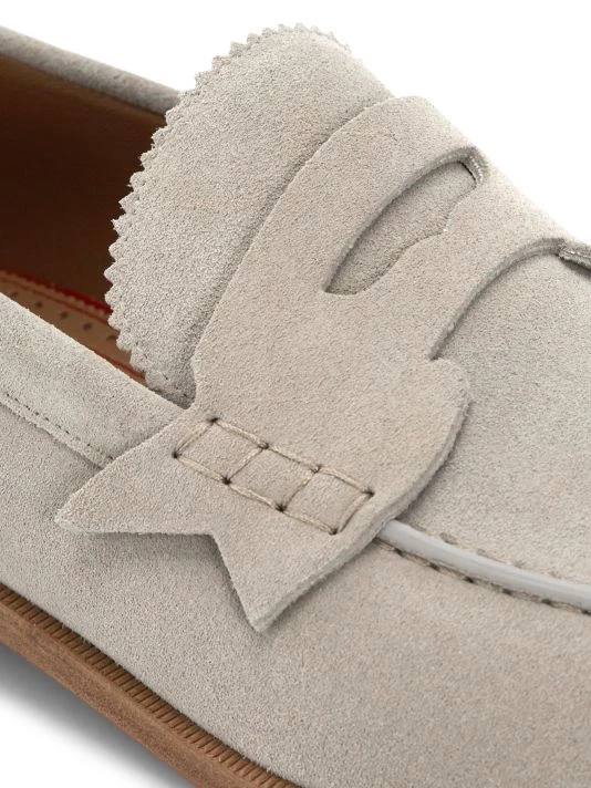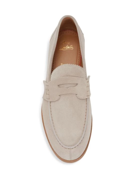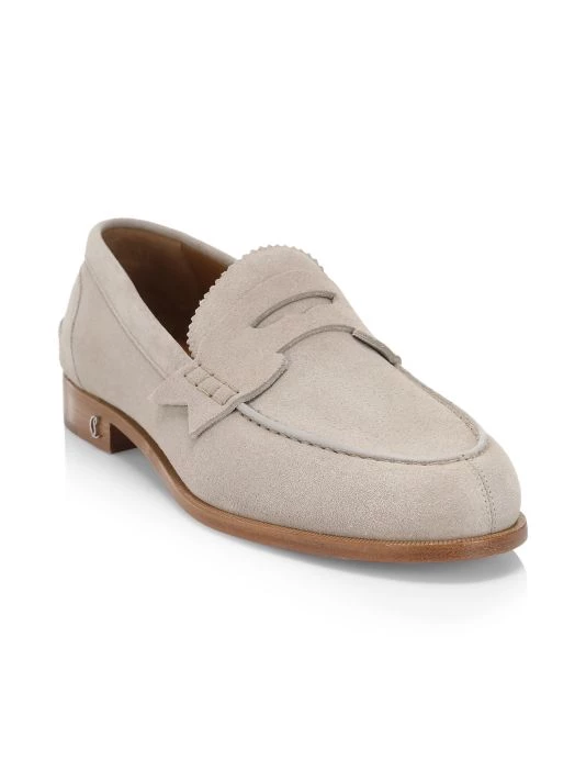These classic penny loafers by Christian Louboutin are expertly crafted of buttery suede. They boast a notched tongue and welt as a nod to the maison’s classic men’s shoes. The style is finished with a metal logo appliqué at the heel.