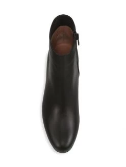 These smooth leather block-heel booties have the brand’s signature red sole.