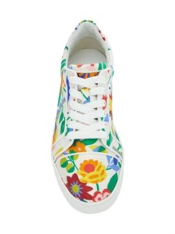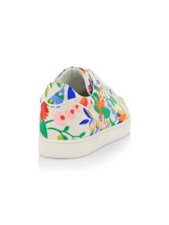 Low-top sneakers crafted of vibrant floral printed satin crepe enhanced with grosgrain piping.