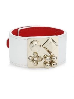 Made in Italy of finely grained leather, Christian Louboutin’s W Carasky bracelet is enhanced with the signature red interior. This contemporary must-have is highlighted with polished monograms and studs echoing the iconic Loubinthesky motif.